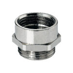 The Flexa ADM-PM is a nickel-plated brass PG to Metric thread adapter with PG Outer threads and Metric Inner threads. The ADM-PM converts PG outer threads to Metric inner threads for all plastic or metal Metric threaded conduit fittings, cable glands, strain reliefs, and cord grips. A sealing O-ring is included.