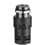 The FLEXA RQGKZE-M is a type of straight plastic conduit connector with metric nickel-plated brass thread and integrated bonding cable strain relief. EMC shielding is provided through the bonding strain relief It features the Flexaquick quick connect system with an integrated snap-in and release sleeve and built-in sealing. It comes with a pre-mounted external O-ring.