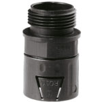 The FLEXA RQLG1-M is a type of straight plastic conduit connector with metric outer thread. It features the Flexaquick quick connect system with an integrated snap-in sleeve with conical sealing