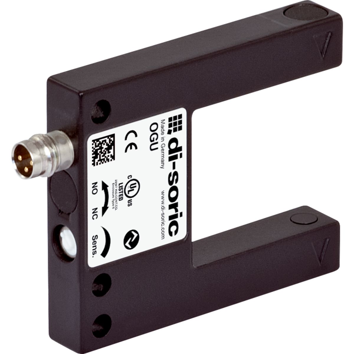 The di-soric OGU-031-G3-T3 is a compact, 30 mm U-shaped fork-style visible red light barrier engineered for precise, non-contact object detection in industrial automation environments. Its durable, space-saving housing allows seamless integration into packaging lines, assembly stations, and automated machinery where accuracy and reliability are essential.